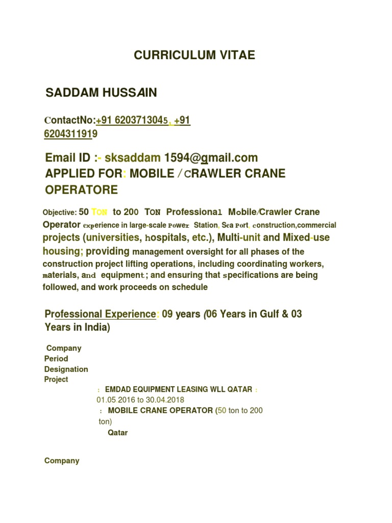 Saddam Mobile Crane Operator Docx